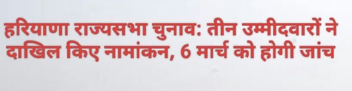 चंडीगढ़: हरियाणा में होने वाले राज्यसभा के द्वि–वार्षिक चुनाव को लेकर राजनीतिक गतिविधियां तेज हो गई हैं। इस क्रम में राज्यसभा चुनाव के लिए नामांकन प्रक्रिया पूरी हो चुकी है और अंतिम दिन तीन उम्मीदवारों ने अपने नामांकन पत्र दाखिल किए।